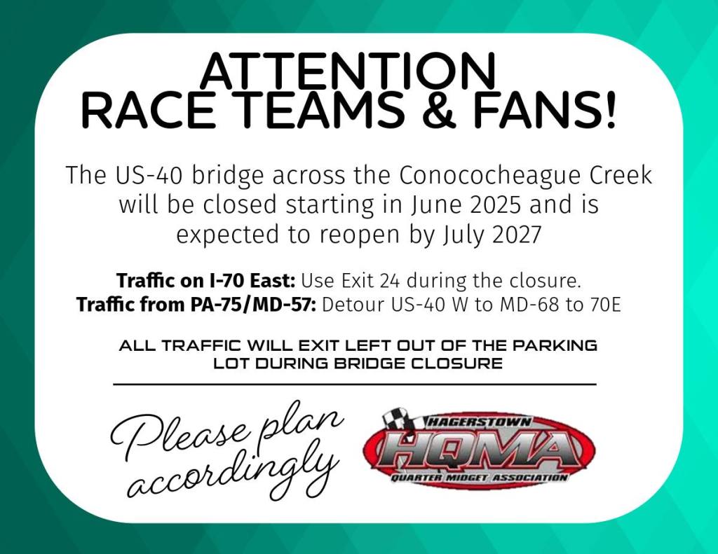 The Hagerstown Quarter Midget Track has perhaps the best location of any quarter midget track in the country. The facility is just a short walk from the 1st turn of Hagerstown Speedway. Noted for the “fastest little dirt track in the East”